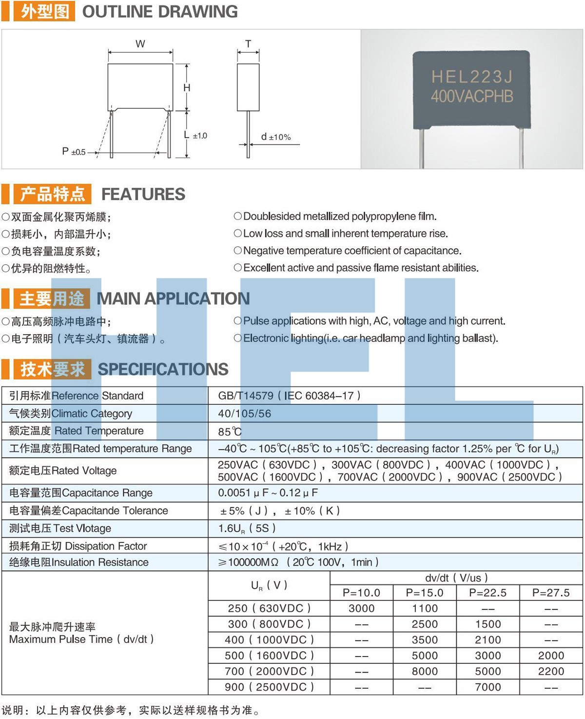 PHB塑料外盒雙面金屬化聚丙烯薄膜電容器 MMKP84